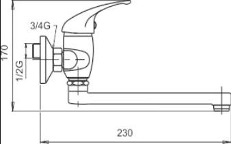 Dřezová nástěnná baterie s roztečí 100 mm a otočným ramenem o délce 200 mm.