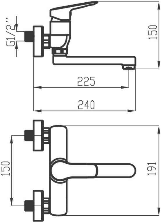 Nástěnná umyvadlová/dřezová baterie s roztečí 150 mm s plochým ramenem 200 mm.