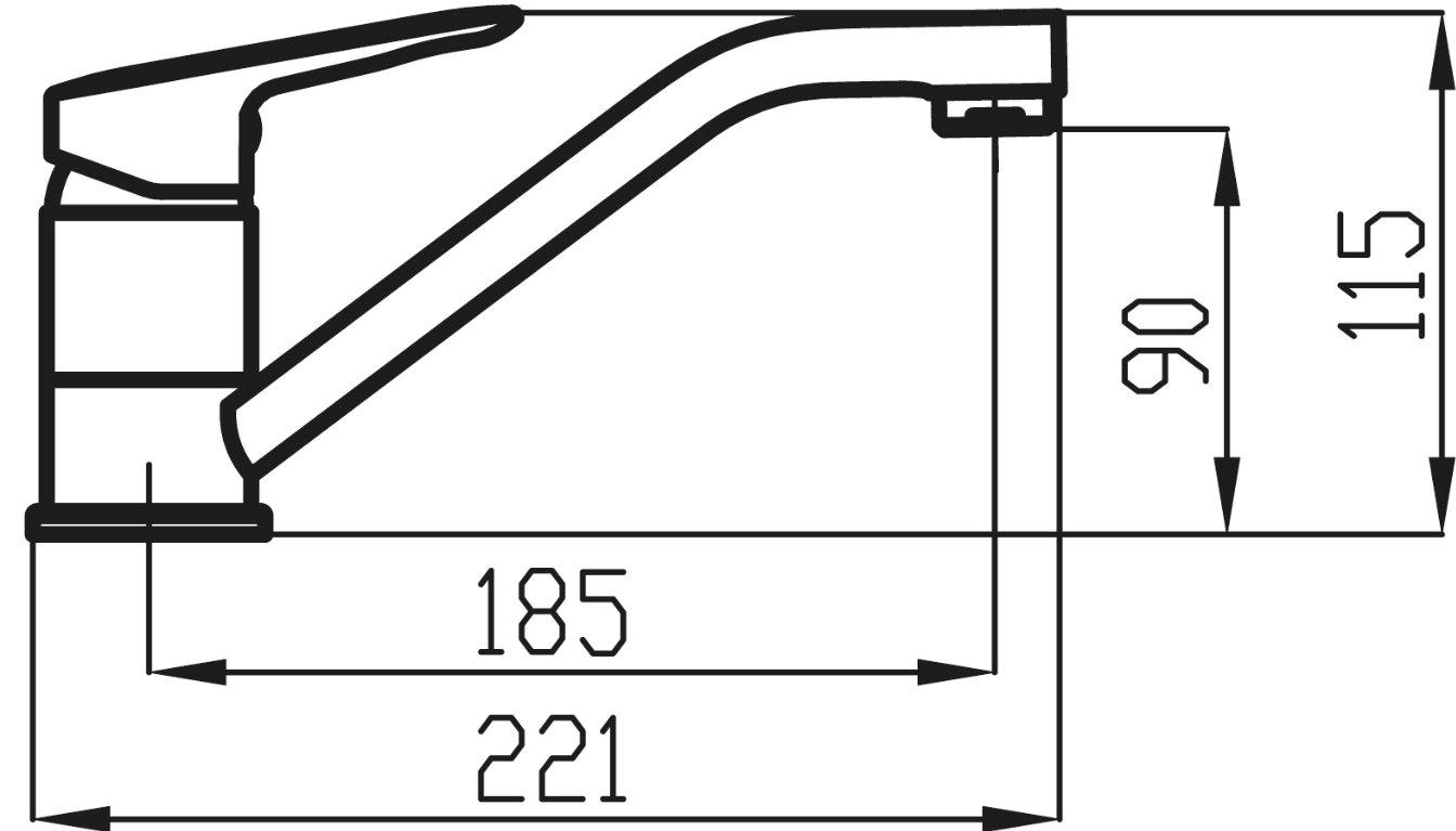 Stojánková umyvadlová/dřezová baterie s otočným ramenem s délkou 185 mm.