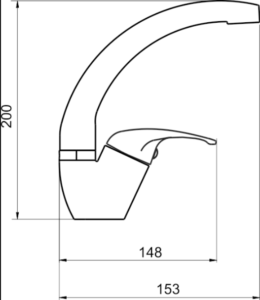 Stojánková umyvadlová baterie s otočným ramenem a délkou 155 mm.