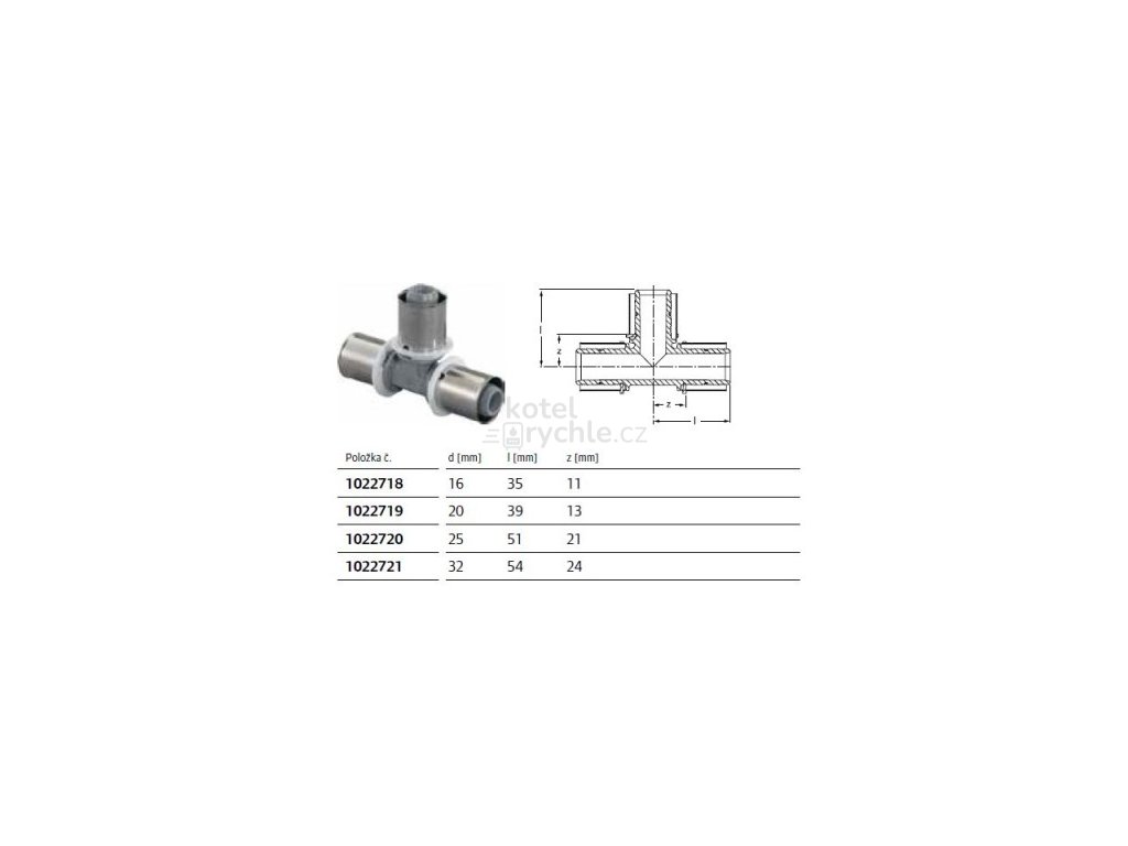 UPONOR MLC S-PRESS T-kus 32-32-32 neredukovaný, s objímkou, lisovací, voda, PPSU
