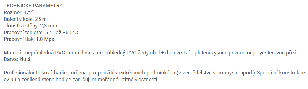 VALMON 1119ZL PROFI hadice 1/2" zahradní, neprůhledná