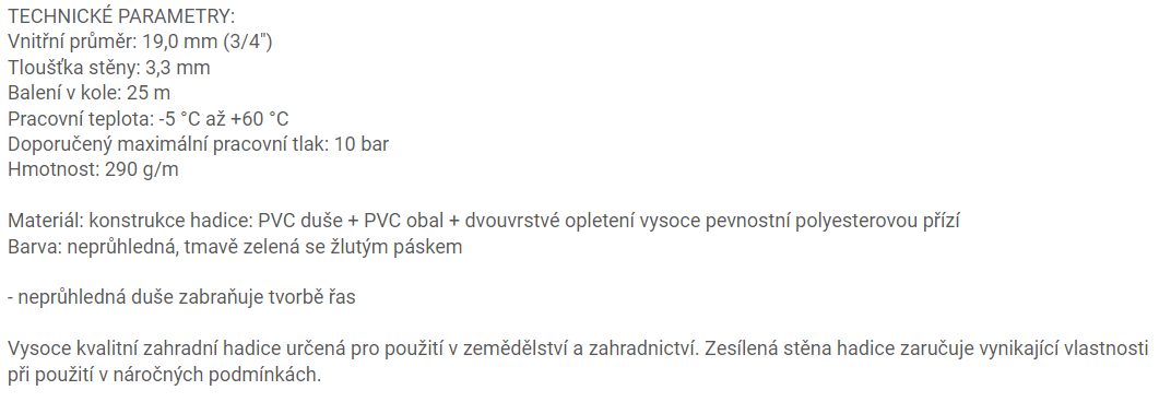 VALMON 1121 hadice 3/4" zahradní, s tlakovou kostrou
