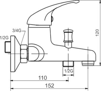 Vanová nástěnná baterie s lékařskou pákou s roztečí 150 mm a aretačním přepínačem.