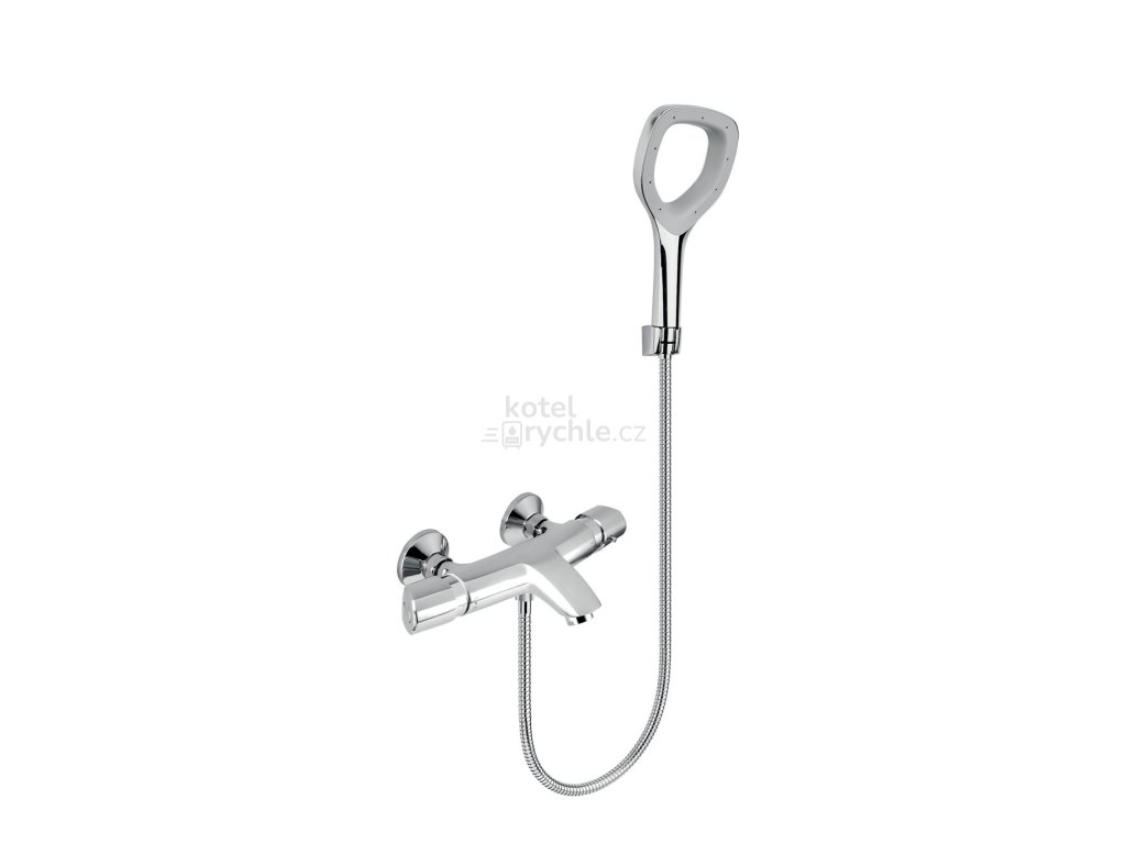 Vanová termostatická nástěnná baterie s roztečí 150 mm a přepínacím ventilem.