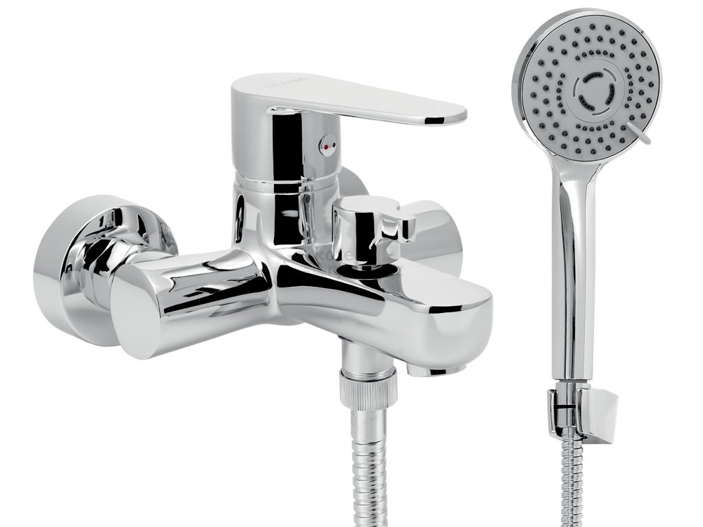 Součástí balení je kovová sprchová hadice 150 cm, pevný držák sprchy, 3-polohová ruční sprcha a regulátor průtoku vody na 1/2" výstupu pro úsporu vody a nákladů.