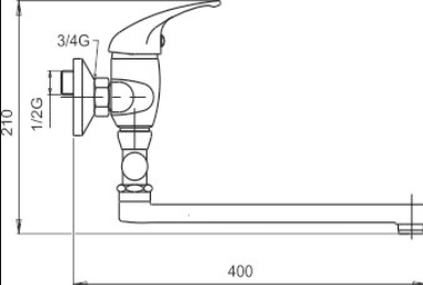 Paneláková nástěnná vanová baterie s roztečí 150 mm s aretačním přepínačem a rovným výtokovým ramínkem v délce až 350 mm.