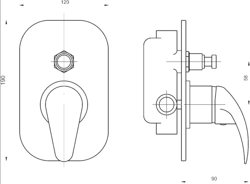 Vanová a sprchová podomítková baterie s aretačním přepínačem a 2 vývody.
