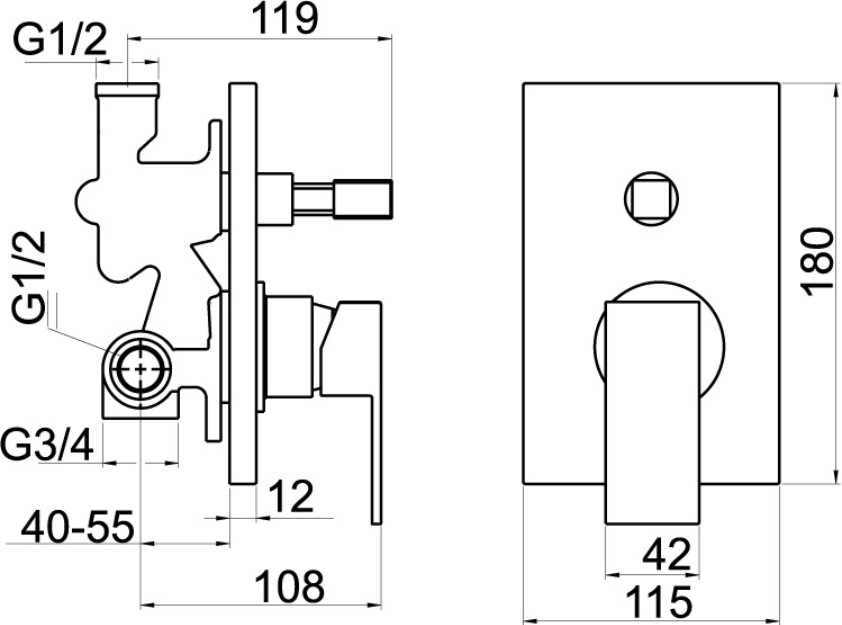 Vanová a sprchová podomítková baterie s aretačním přepínačem a 2 vývody.