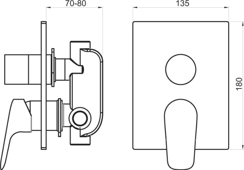 Vanová a sprchová podomítková baterie s aretačním přepínačem a 2 vývody.