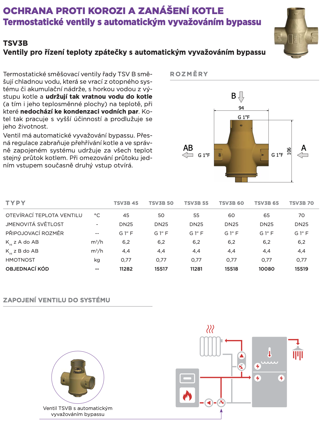 Ventil směšovací Regulus - TSV3B vnitřní 55°C, G1", DN 25
