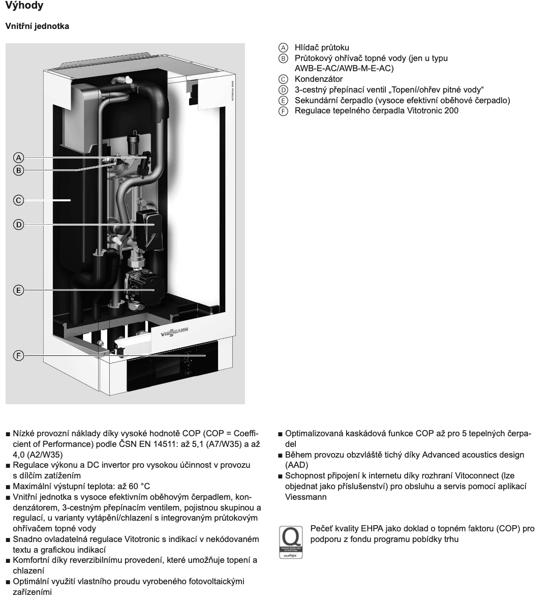 Tepelné čerpadlo vzduch/voda Vitocal 200-S ve splitovém provedení využívá ekologicky a cenově efektivně teplo obsažené ve venkovním vzduchu. Je koncipováno pro úsporný provoz s vysokou hodnotou COP, což snižuje provozní náklady. Díky vestavěné technologii pro akustický komfort bydlení, tzv. akustickému designu – Advanced Acoustic Design (AAD), je provoz obzvláště tichý, což je ideální pro použití v sídlištích s řadovými domy.