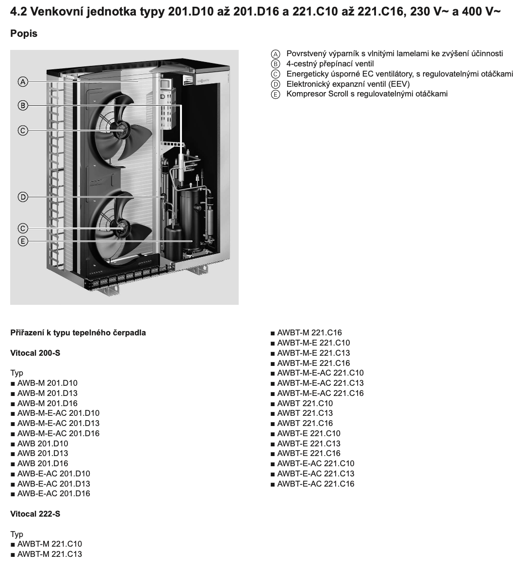 VIESSMANN VITOCAL 200-S AWB-E-AC 201.D10 tepelné čerpadlo 7,58kW, 400V, vzduch-voda, venkovní+vnitřní jednotka s průtokovým ohřevem