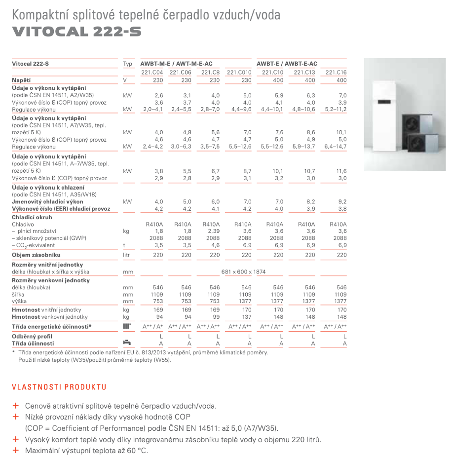 VIESSMANN VITOCAL 222-S AWBT-M-E 221.C06 tepelné čerpadlo 4,75kW, vzduch-voda, venkovní+vnitřní jednotka se zásobníkem