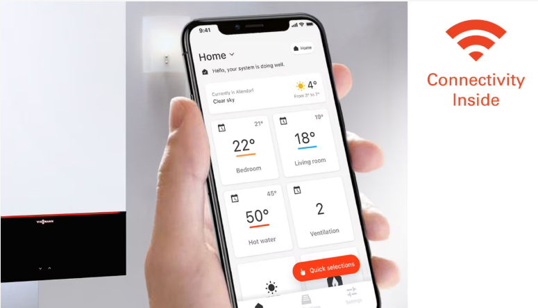 Kotel lze ovládat i online přes integrované rozhraní WiFi pro větší komfort, úsporu energie a bezpečnost s ViCare.