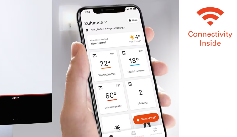 Kotel lze ovládat i online přes integrované rozhraní WiFi pro větší komfort, úsporu energie a bezpečnost s ViCare.