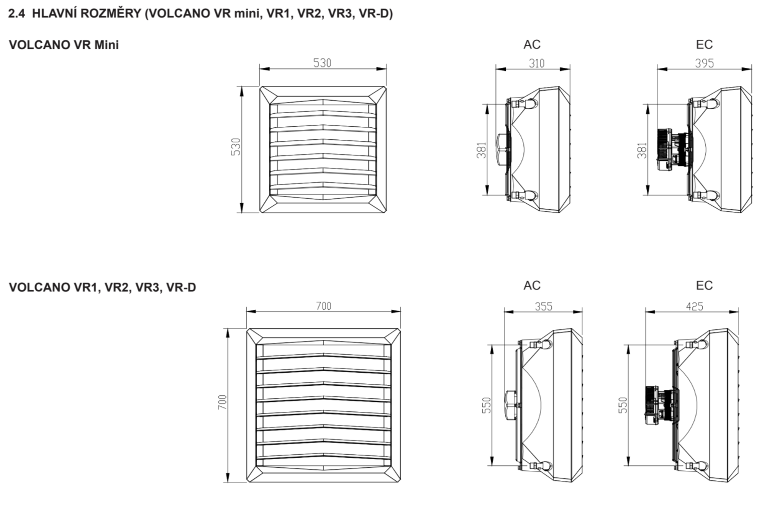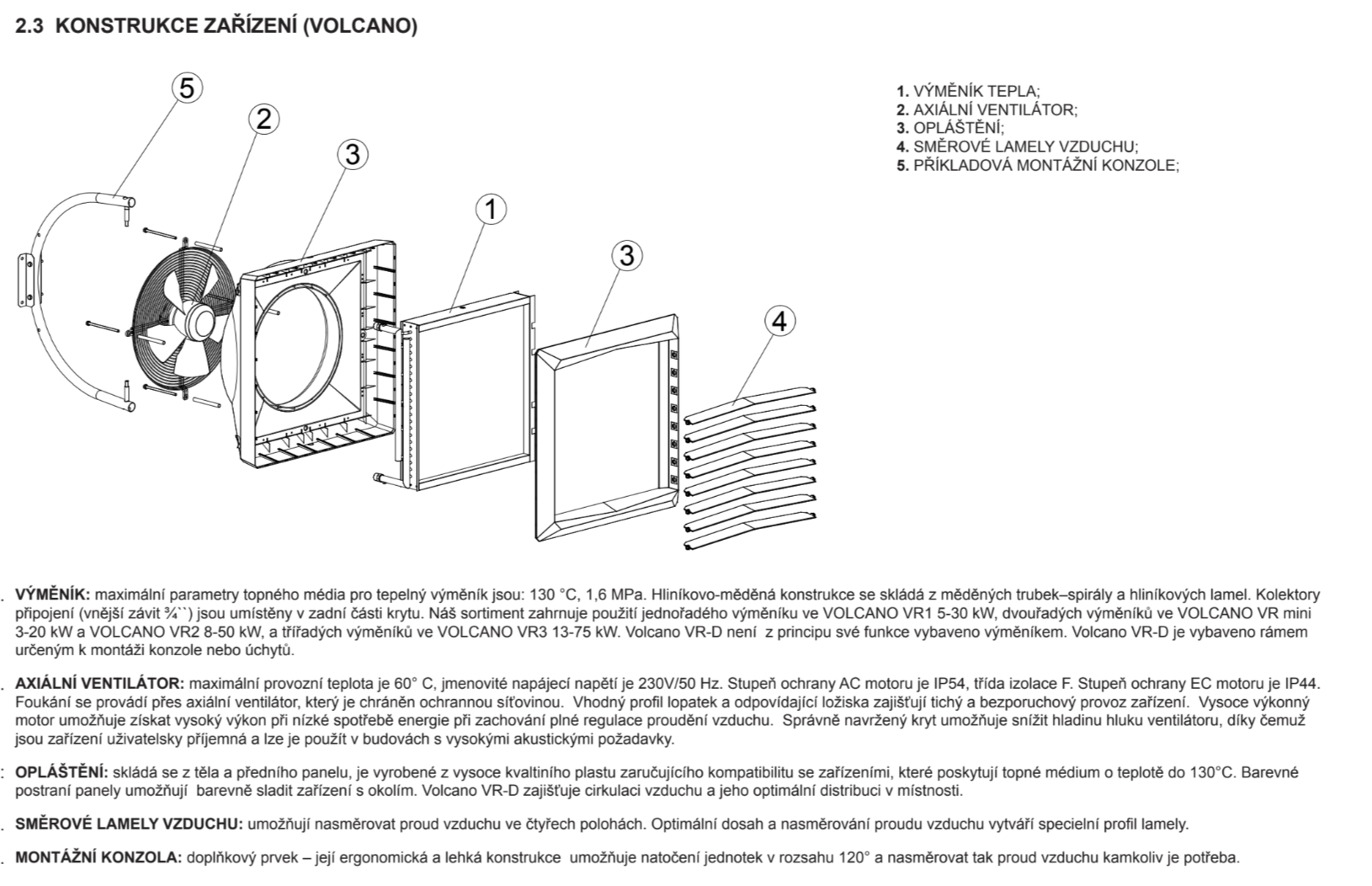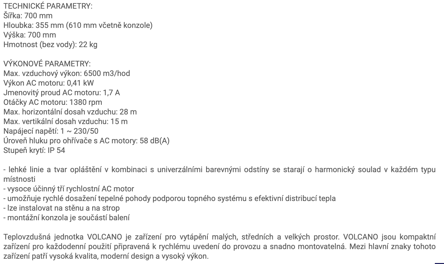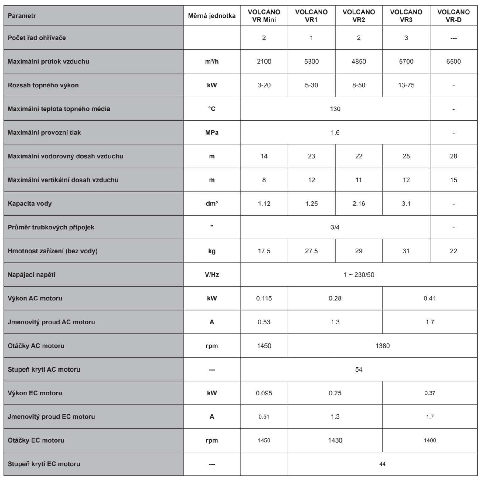 VTS VOLCANO VR-D teplovodní jednotka 6500m3/h, AC motor, včetně konzoly