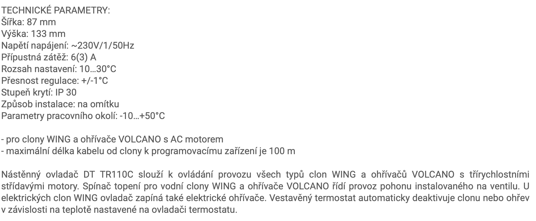 VTS WING/VOLCANO nástěnný ovladač 230V