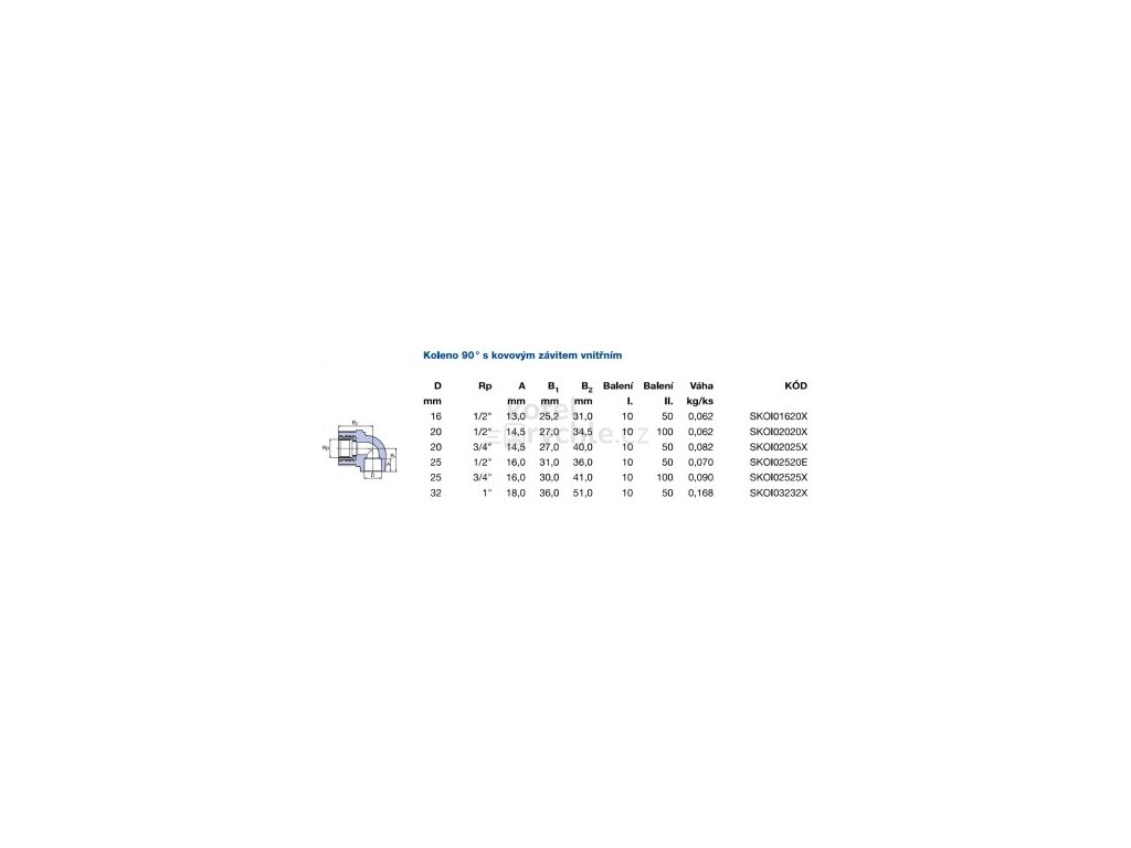 | Rozměr tvarovky: | 25x3/4", 90° |
