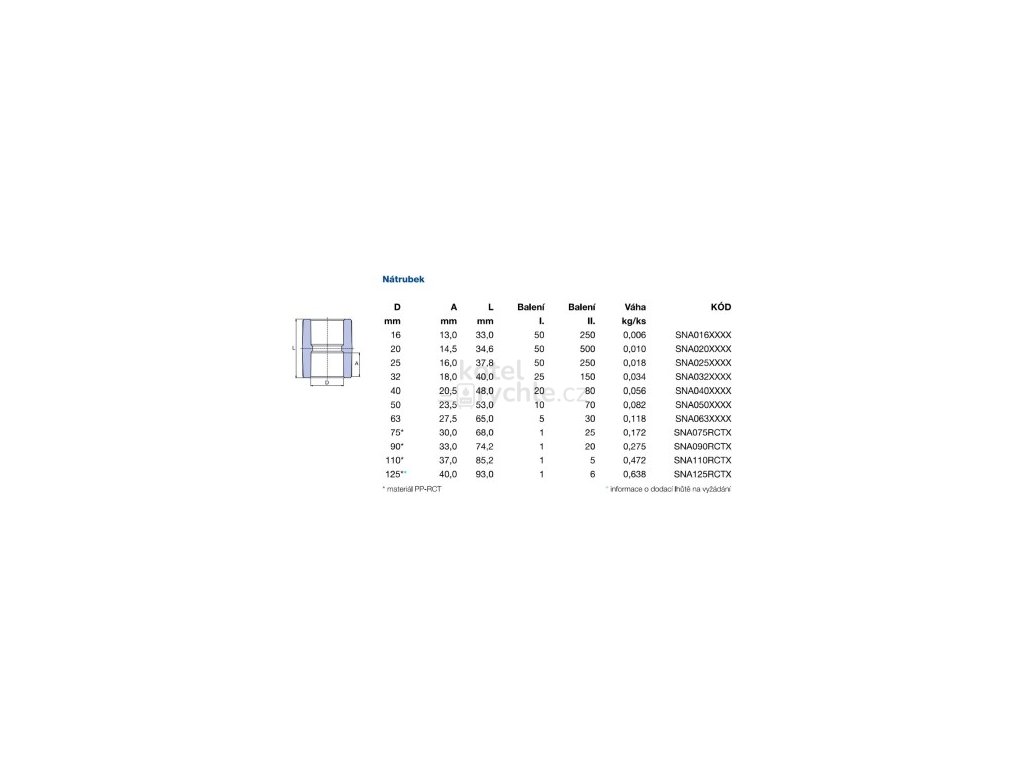 WAVIN EKOPLASTIK PPR nátrubek 50mm, svařovací, voda, PP-RCT