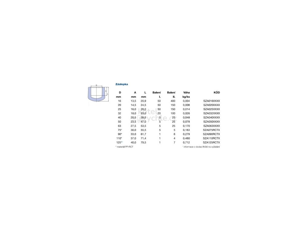 WAVIN EKOPLASTIK PPR záslepka 32mm, svařovací, voda, PP-R