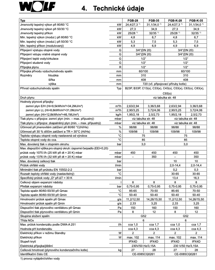Moderní kondenzační technika šetří náklady na energii. - kotel lze provozovat také pomocí aplikace pro smartphone nebo přes portál SmartSet (s modulem rozhraní iSM7e na přání). - stylový vzhled dokonale zapadá do vašeho obytného prostoru.- stylový design - velmi malé kompaktní rozměry umožňují instalaci i ve velmi omezeném prostoru. - malé rozměry - Jednoduché a přehledné ovládání přímo na kotli umožňuje snadnou obsluhu - WOLF FGB je k dispozici rovněž jako kombinovaný kotel FGB-K s integrovaným ohřevem vody FGB nabízí nejmodernější kondenzační technologii pro efektivní vytápění pomocí kondenzačního tepla. Navíc můžete svůj kotel s regulačním systémem WOLF v kombinaci s naším modulem rozhraní ISM7e kdykoli ovládat smartphonem. Moderní kondenzační technika šetří náklady na energii.
