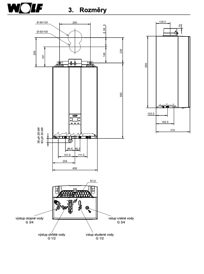 - Max. dovolený tlak v otopném okruhu: 3 bar