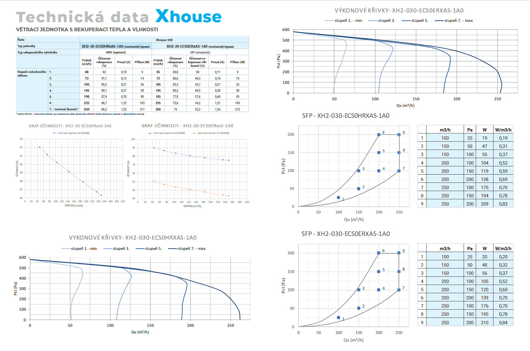 XVENT XHOUSE2 větrací jednotka 250 m3/hod s rekuperací, pravá, teplotní výměník, předehřev, mechanický by-pass