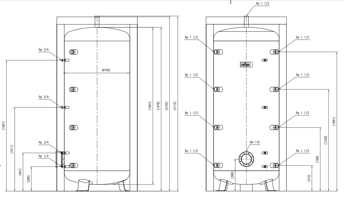 Zásobník akumulační Reflex Storatherm Heat H 1000/1 bez izolace