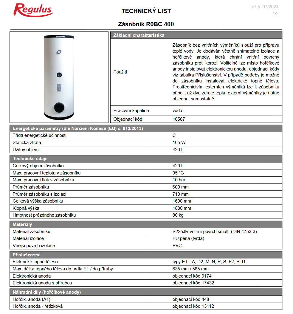 - Zásobníky jsou vybaveny magnesiovou anodou.