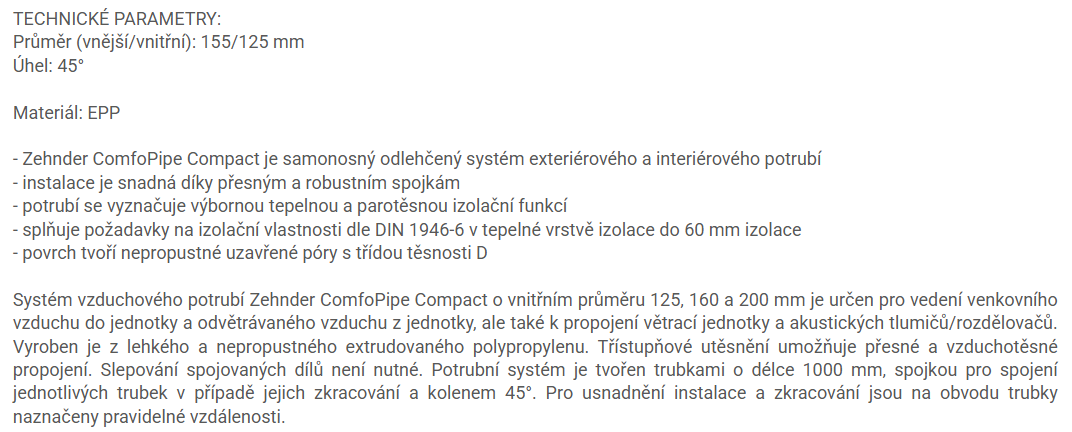 ZEHNDER COMFOPIPE COMPACT koleno 45°