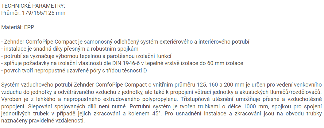 ZEHNDER COMFOPIPE COMPACT spojka DN125
