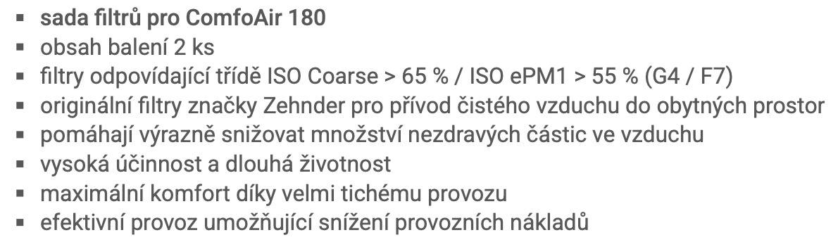 ZEHNDER sada filtrů pro ComfoAir 180, G4/F7, 2 kusy