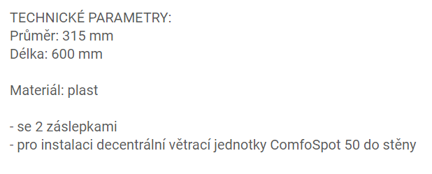 ZEHNDER stěnová instalační trubka 315x600mm, kruhová, se 2 záslepkami