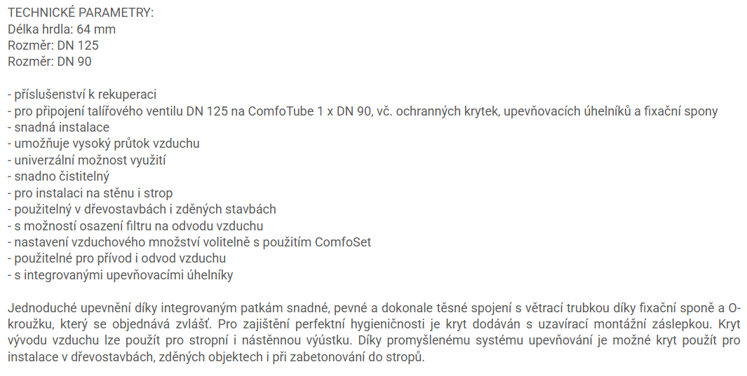 ZEHNDER TVA-P 90 kryt vývodu vzduchu 64mm